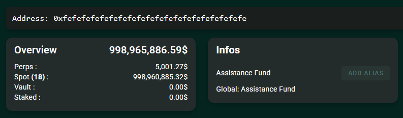 Im Assistance Fund liegen 998.965.886,59 USD, vor allem als Spot-Bestände auf einer vom System kontrollierten Adresse.