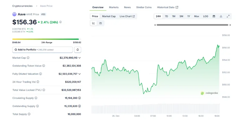 Kulechov also clarified that his $15 million AAVE purchase was a personal investment and that purchase has not been used for voting. He said that with this buy it just shows his belief in Aave. Despite volatility, AAVE trades near $150, while Aave’s total value locked exceeds $15 billion, showing strong DeFi leadership across multiple blockchains and active users.