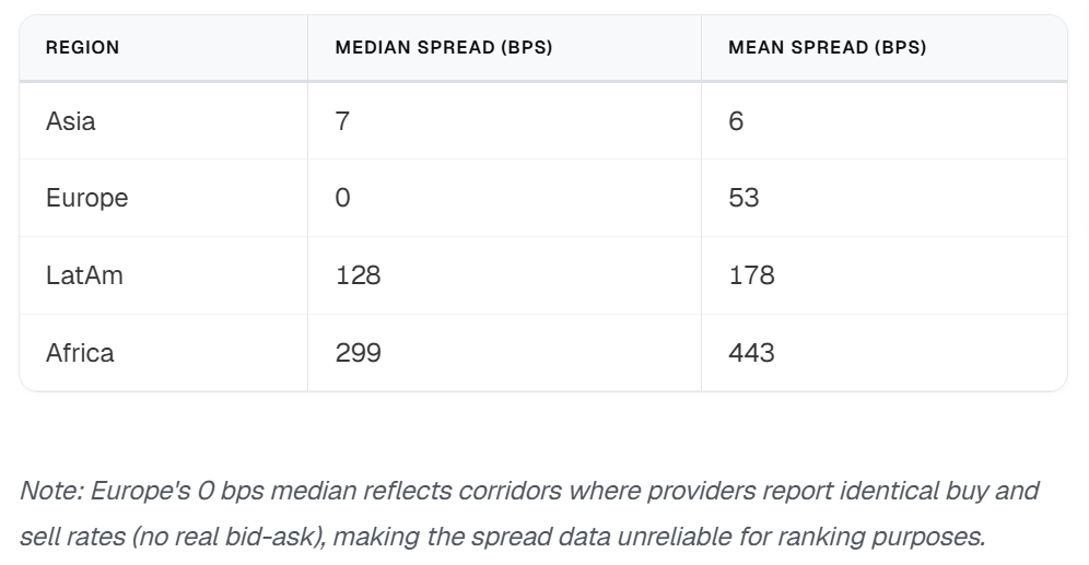 In ganz Afrika liegen die typischen Kosten für diese Konvertierung bei etwa 3 % bzw. 299 Basispunkten. Im Vergleich dazu zahlen Nutzer in Lateinamerika rund 1,3 % und in Asien sogar nur 0,07 %. Afrikanische Kunden werden also eindeutig benachteiligt.