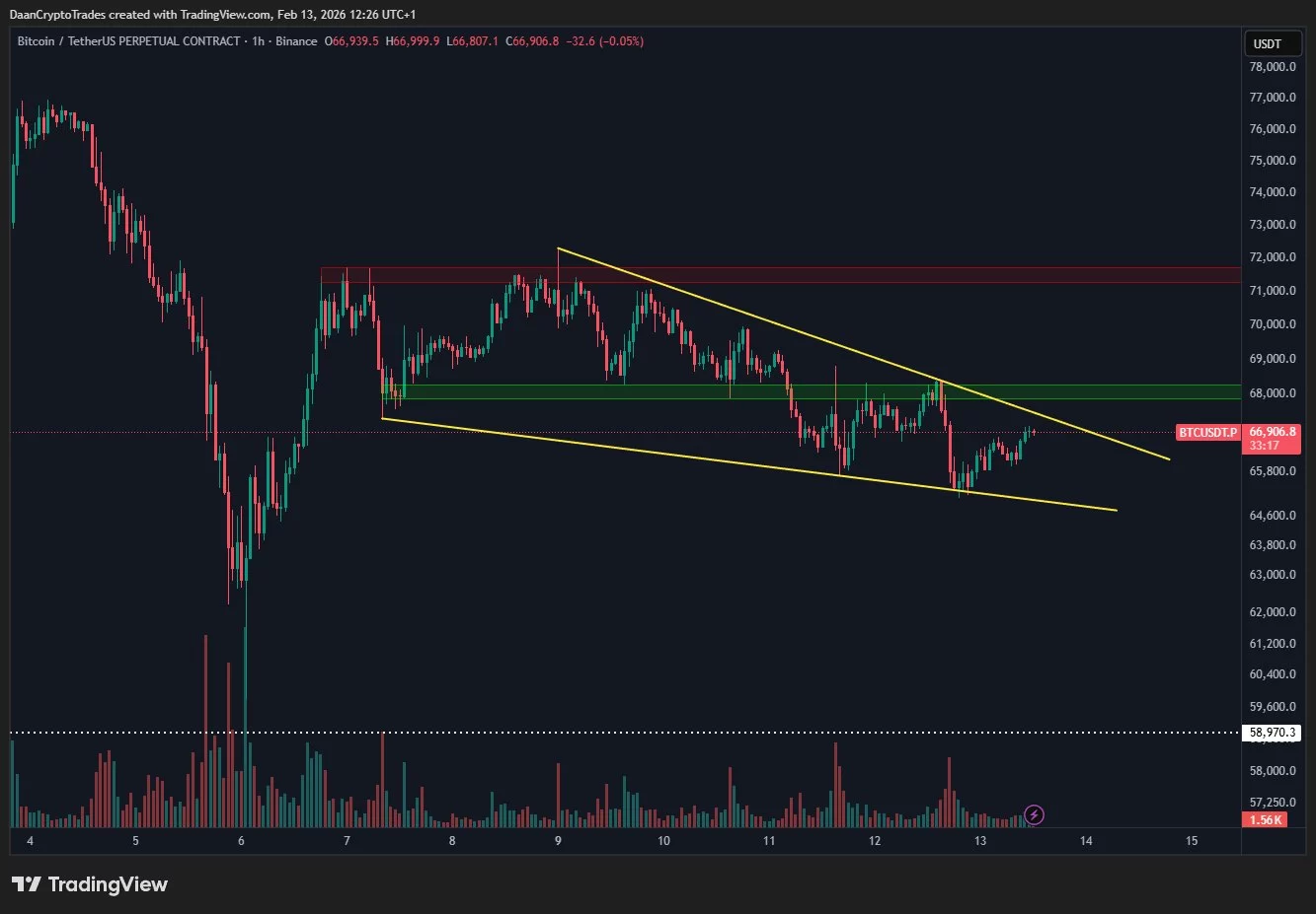 Al momento de escribir, Bitcoin está rondando los $67,000, mientras que gran parte del mercado de altcoins sigue cayendo en rojo. El impulso parece estar desvaneciéndose para las criptomonedas a medida que se acerca el fin de semana. El analista ampliamente seguido DaanCrypto Trades señala que Bitcoin se está consolidando dentro de un patrón de cuña descendente, identificando niveles críticos para monitorear cualquier posible ruptura.