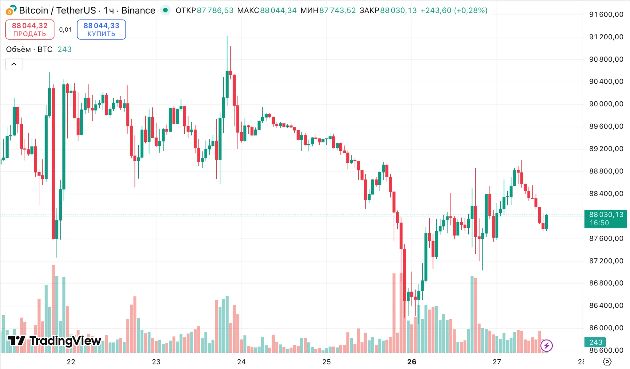 Пока биткоин продолжает двигаться в боковом диапазоне. На момент написания актив торгуется около $88 000.