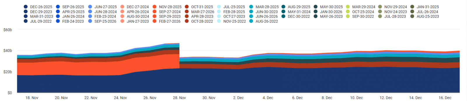 El apetito por el riesgo es débil y el volumen sigue siendo limitado. Desde el 10 de octubre, los inversores han caído continuamente en trampas de liquidez, perdiendo no solo miles de millones sino también su confianza. Esta creciente aversión al riesgo ha motivado un aumento en las ventas. Además, dos malas noticias ya están en el horizonte para enero, siendo la dirección más probable para las criptomonedas hacia abajo.