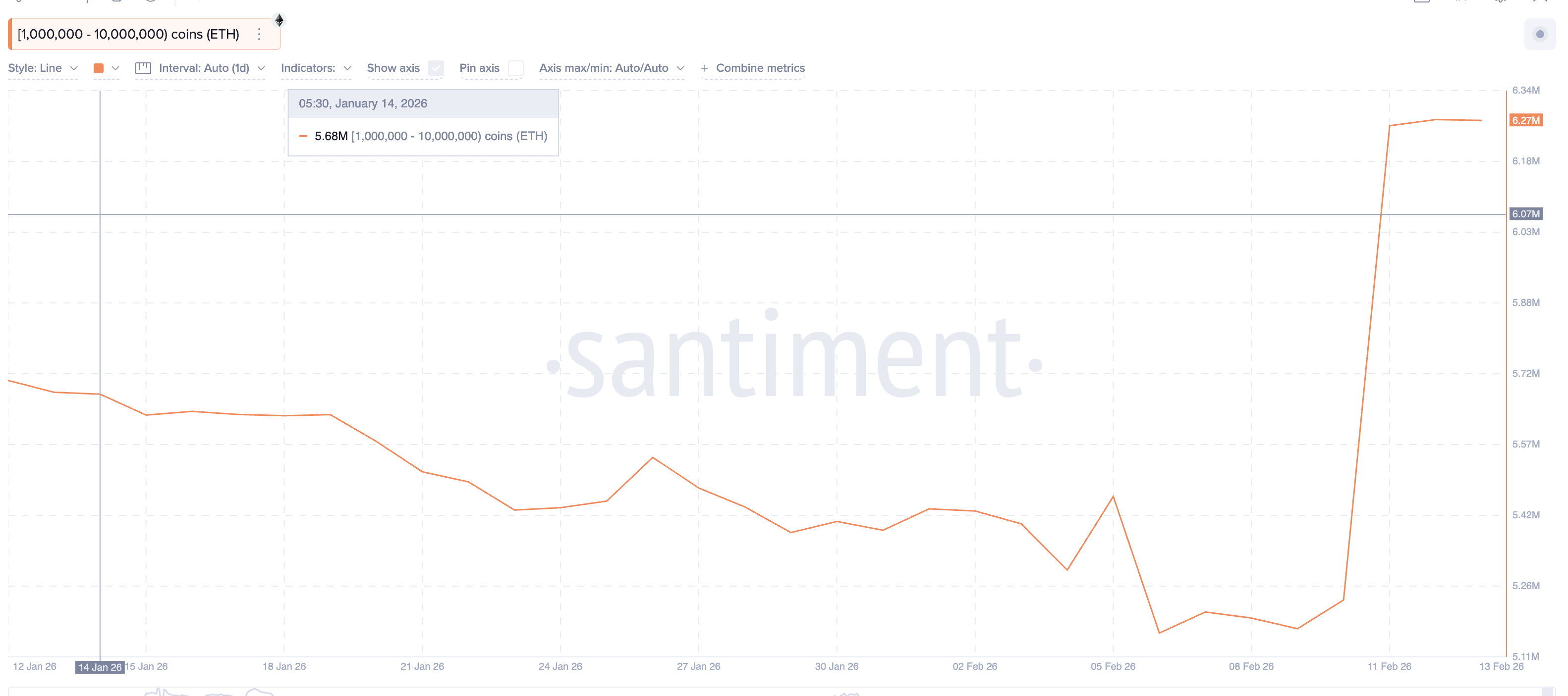 On-chain data shows that the largest Ethereum holders are positioning for a rebound. Since February 9, addresses holding between 1 million and 10 million $ETH have increased their holdings from around 5.17 million $ETH to nearly 6.27 million $ETH. That is an addition of more than 1.1 million $ETH, worth roughly $2 billion at current prices.