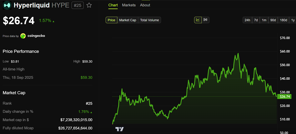 Trotzdem zeigt die Reaktion am Markt, dass der HYPE-Kurs und die Erwartungen auseinandergehen. Der Token liegt noch etwa 53 Prozent unter seinem Höchststand.