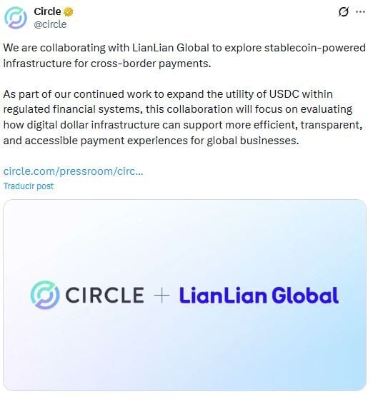 Circle y LianLian Global también explorarán cómo las plataformas de monedas estables pueden ayudar a simplificar estos flujos, permitiendo liquidaciones casi en tiempo real y una mayor transparencia.