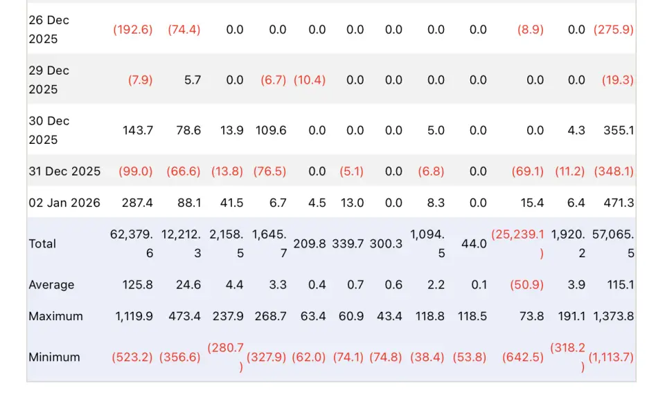Снижение цен заметно усилило осторожность участников рынка. Это подтверждает Индекс страха и жадности (Crypto Fear & Greed Index), отражающий общие настроения инвесторов. С начала ноября показатель стабильно находится в зонах «Крайний страх» и «Страх». В воскресенье, 4 января, индекс вновь опустился до отметки «Крайний страх», зафиксировав значение в 25 баллов из 100.