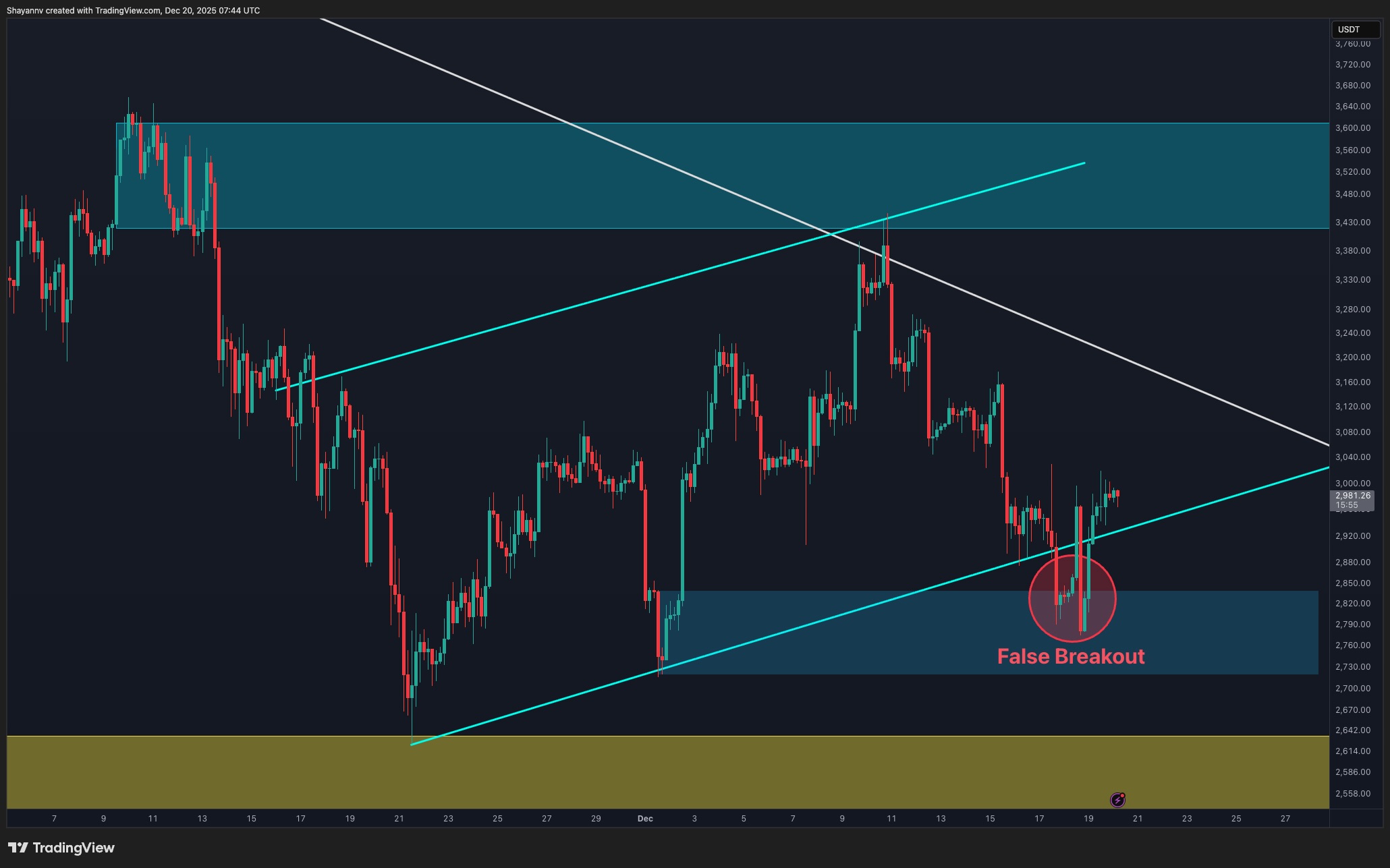 As long as the price remains below the descending trendline and above the $2.5K support, the daily structure favors range-bound conditions. A daily close outside of this range will be required to resolve the current consolidation and define the next directional leg.