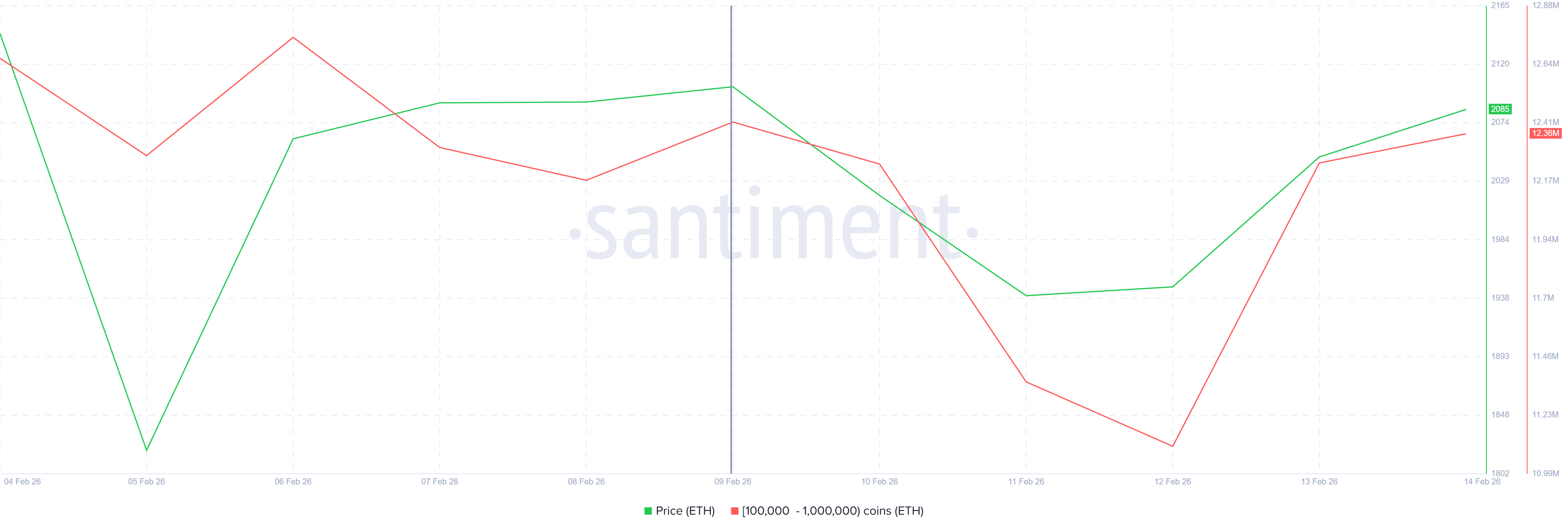 Addresses holding between 100,000 and 1 million $ETH sold approximately 1.3 million $ETH between February 9 and February 12. That selling equates to roughly $2.7 billion in value. However, the same cohort purchased 1.25 million $ETH within the following 48 hours.