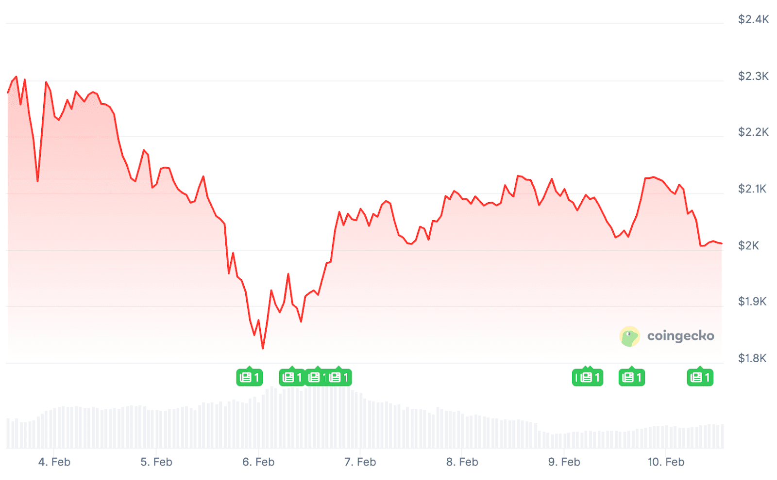 Die Wochengrafik von Ethereum. Quelle: CoinGecko