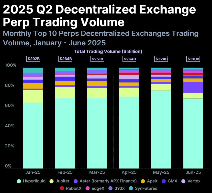Hyperliquid удерживает лидерство в сегменте бессрочных контрактов. Во втором квартале 2025 года объем торгов на платформе превысил $653 млрд, а доля рынка составила 73%.