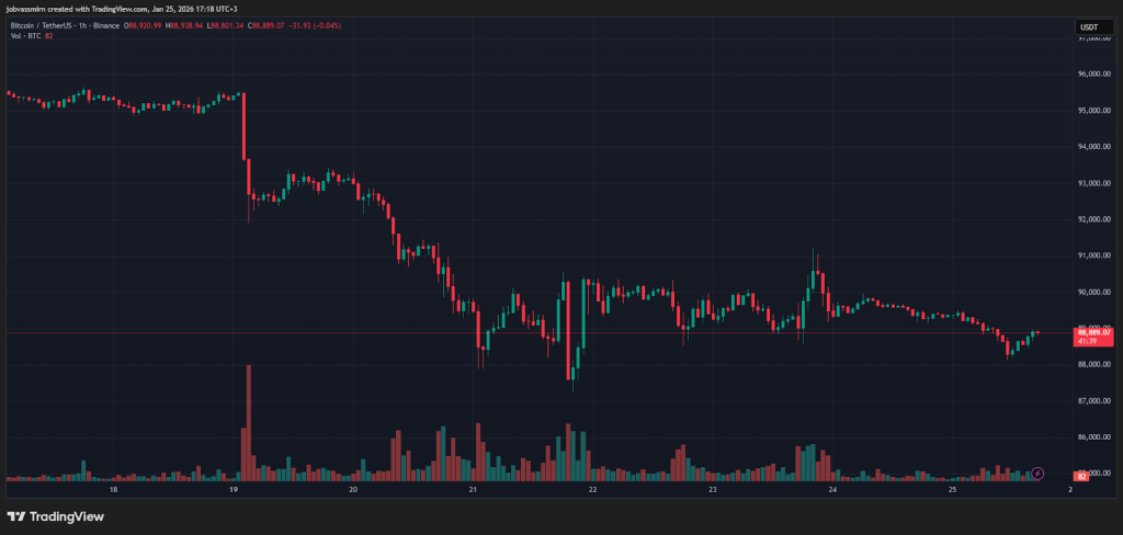 До конца недели флагман крипторынка торговался в диапазоне от $88 000 до $91 000. На момент написания монета находится около $89 000.