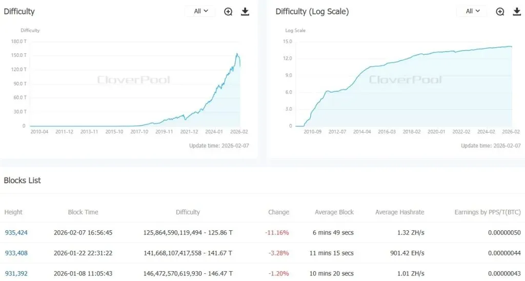 7 февраля сложность майнинга биткоина обвалилась на 11,16% — до 125,86 Т. Это стало самым масштабным снижением показателя с момента введения запрета на добычу криптовалют в Китае в 2021 году.