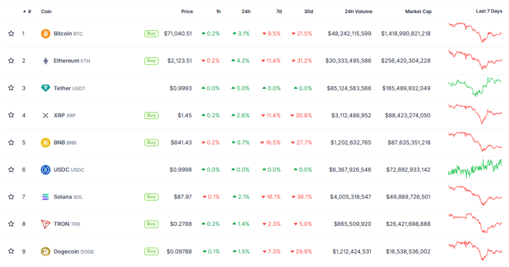 На момент написания биткоин восстановился к $70 000. Просадка за семь дней составила 9,5%.