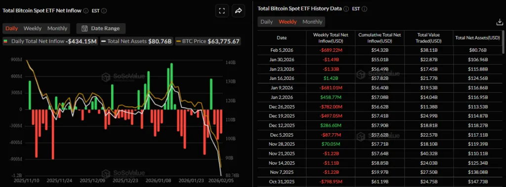 Падение рынка цифровых активов сопровождалось каскадом ликвидаций на миллиарды долларов и оттоками из ETF. За торговую неделю инвесторы вывели из спотовых биткоин-фондов $689 млн.