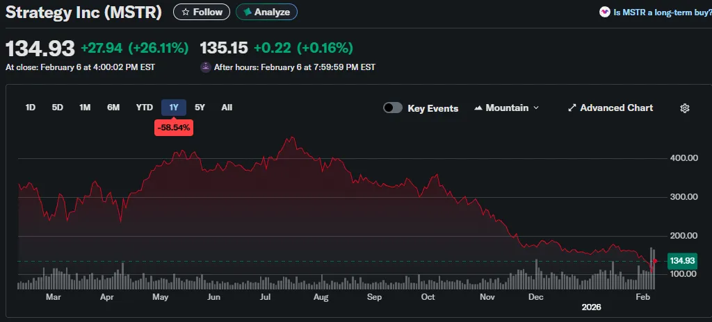Акции Strategy тоже находятся в тяжелом положении: за год котировки MSTR просели на 54%.
