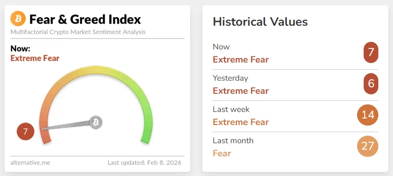 В то же время криптовалютный индекс страха и жадности достиг экстремальных минимумов ниже 10 баллов.