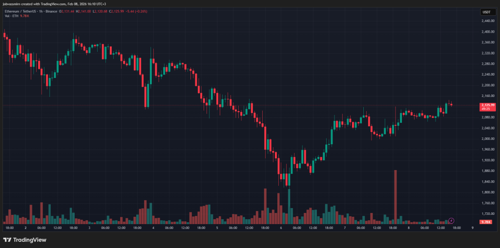 Вместе с флагманом в «красную зону» ушли почти все монеты из топа по капитализации. Ethereum терял важный психологический уровень, провалившись ниже $2000. Сейчас актив восстановился к $2100 (-11,5% за неделю).