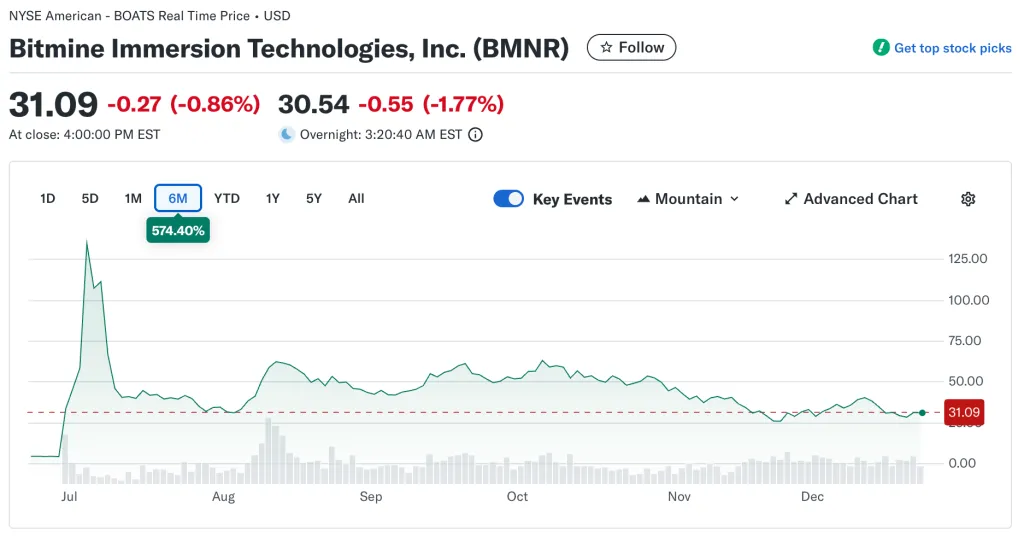 За последние полгода акции фирмы подорожали более чем на 570%. BitMine — одна из немногих DAT, чьи бумаги выиграли от перехода на стратегию накопления криптовалют.