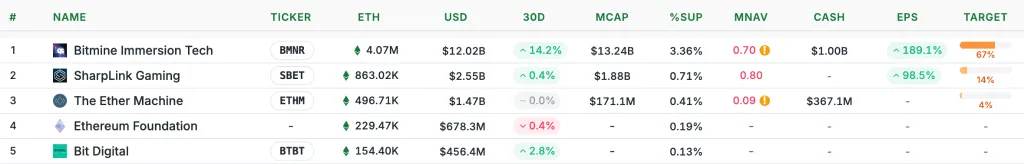 На прошлой неделе крупнейший корпоративный держатель Ethereum — BitMine — докупил 13 412 ETH на $40,61 млн. Объем второй по капитализации криптовалюты под управлением компании превысил 4 млн ETH ($12 млрд).