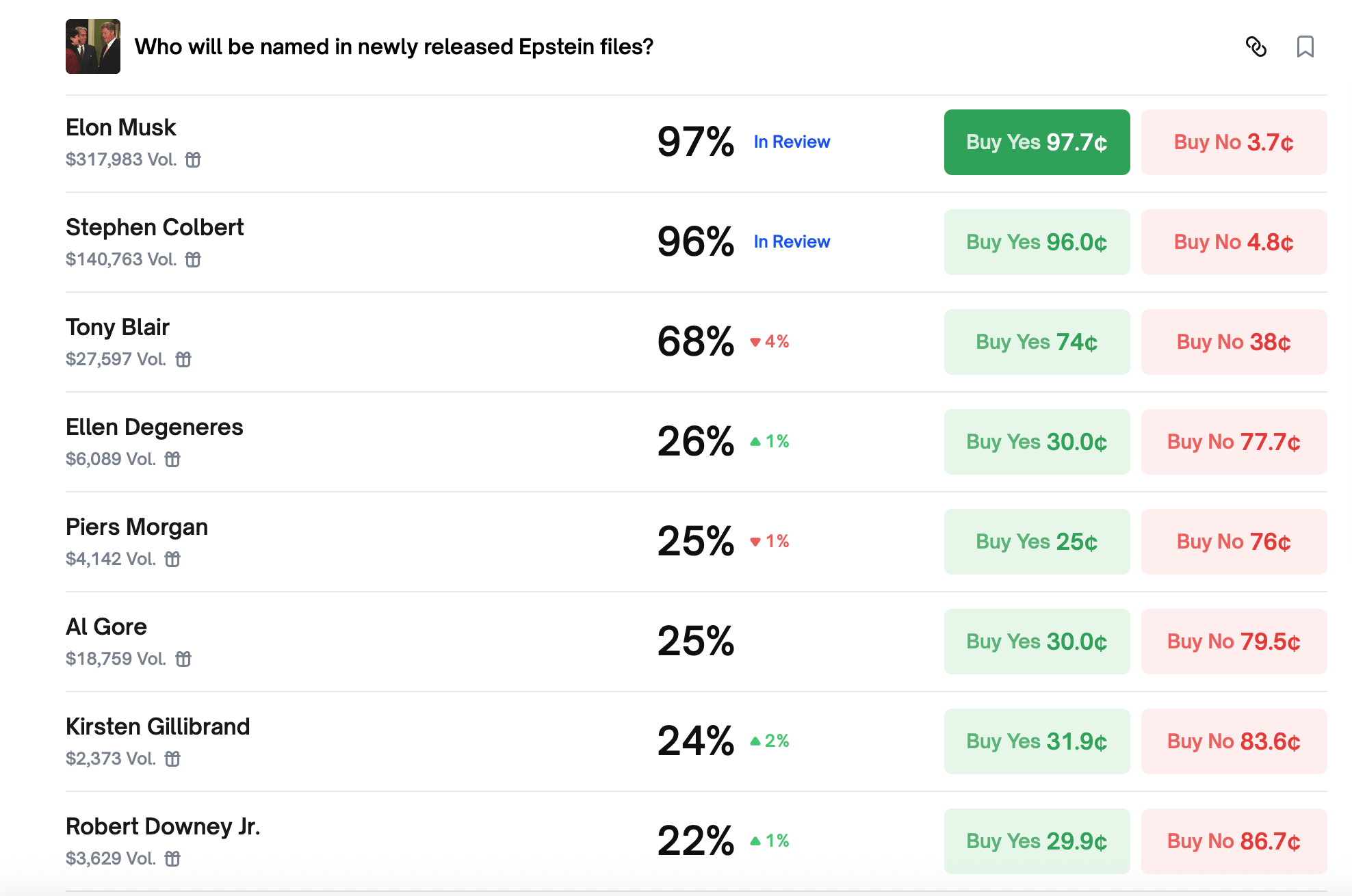 Prediction Marketplace Traders Price In Curiosity as Epstein Files Drive Market Action