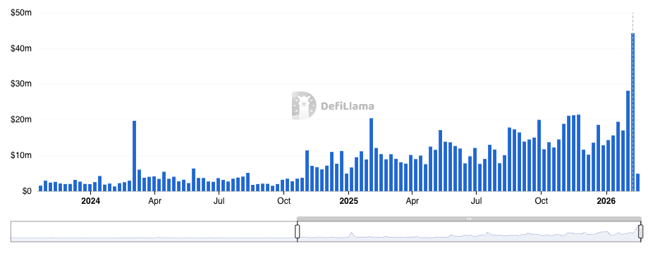 Onchain options activity reached all-time highs over the last two weeks, with $44 million of volume in the first week of February and $28 million during the last week of January.