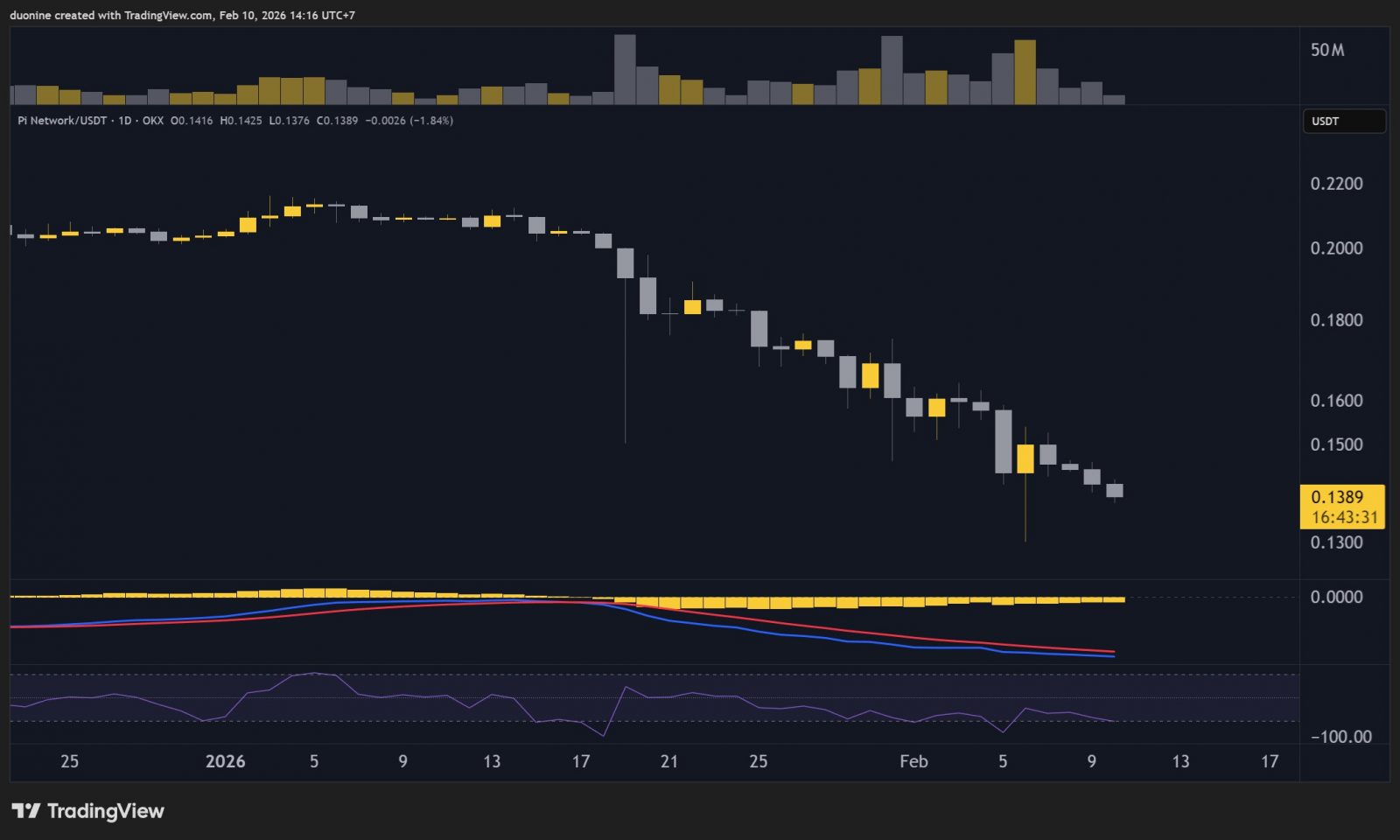Desde que el precio empezó a caer a principios de enero, PI no ha tenido un rally de alivio. Esta venta ha sido extremadamente agresiva y continúa al momento de esta publicación. Con los compradores ausentes, la búsqueda de un piso sigue abierta. El soporte actual está en $0,13 y la resistencia en $0,15.