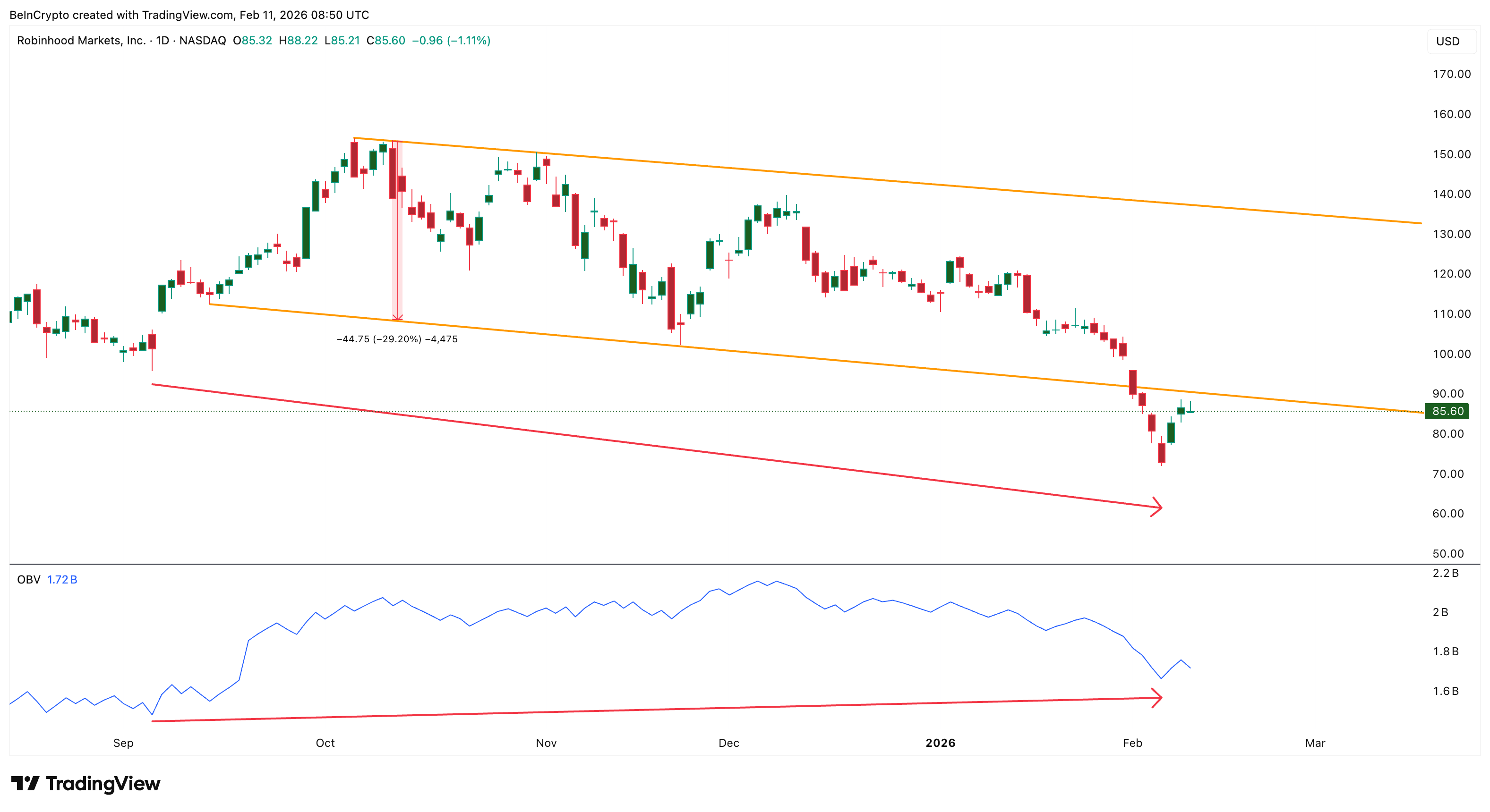 HOOD price broke below the falling channel on February 2, triggering a near 30% breakdown. While $71 offered support, the crypto-led weakness could soon attempt to push the prices down.