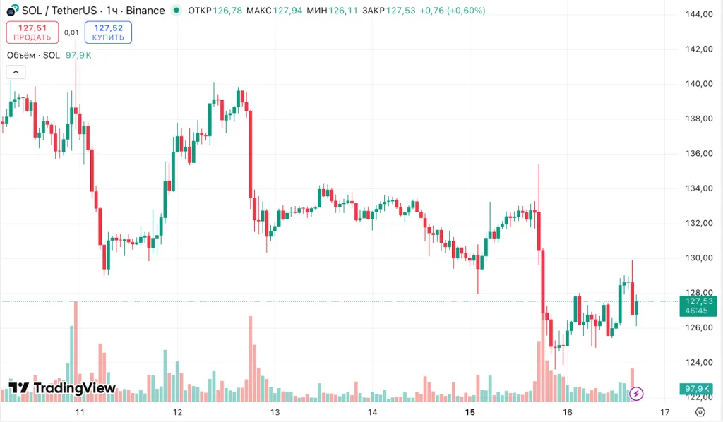 На фоне атаки цена SOL снизилась на 4% — за последние сутки. На момент написания актив торгуется около $127.