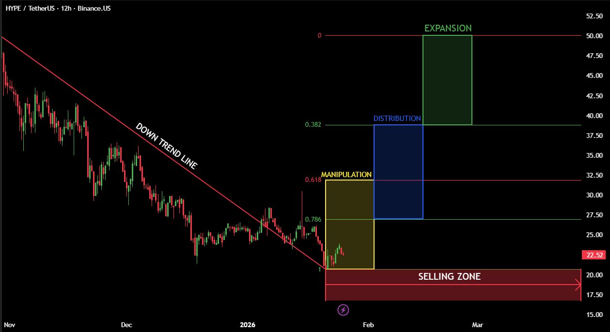 Открытый интерес (OI) по фьючерсам на $HYPE за тот же период вырос на 48,7% — до $1,82 млрд к 28 января, что указывает на возвращение трейдеров деривативов.