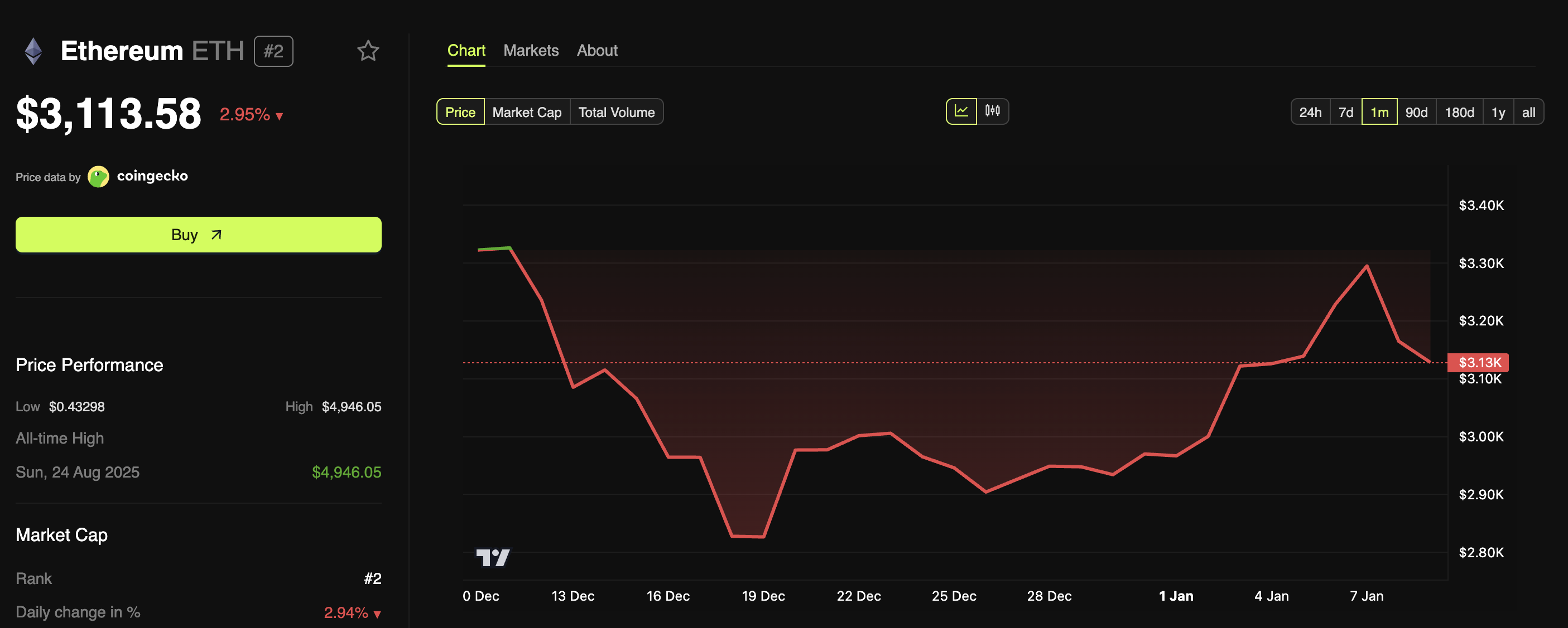 BeInCrypto Markets data showed that ETH closed 2025 down 10.9%. Nevertheless, green candles mostly dominated the chart at the beginning of the new year, with the altcoin rising 11.3% between January 1 and January 6.